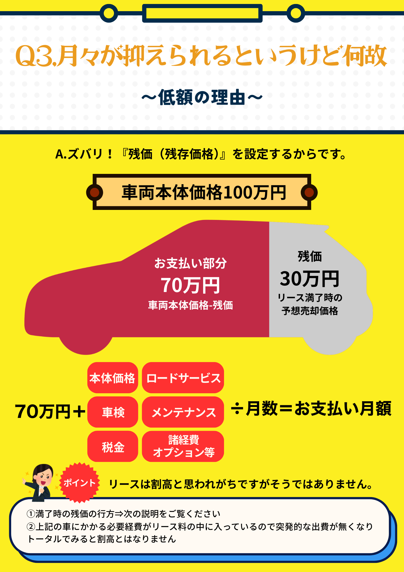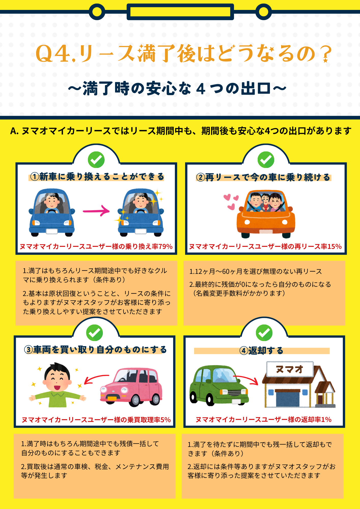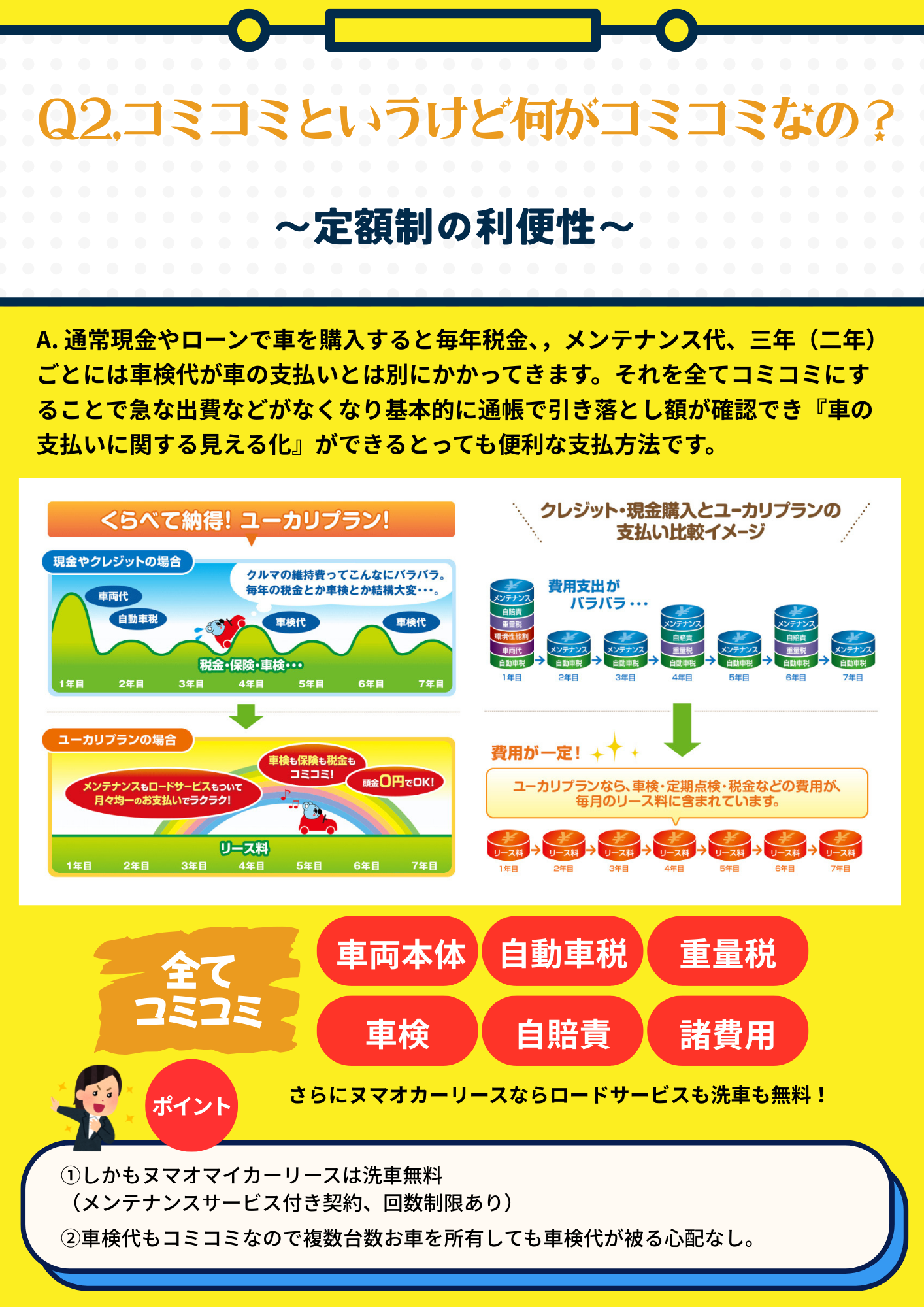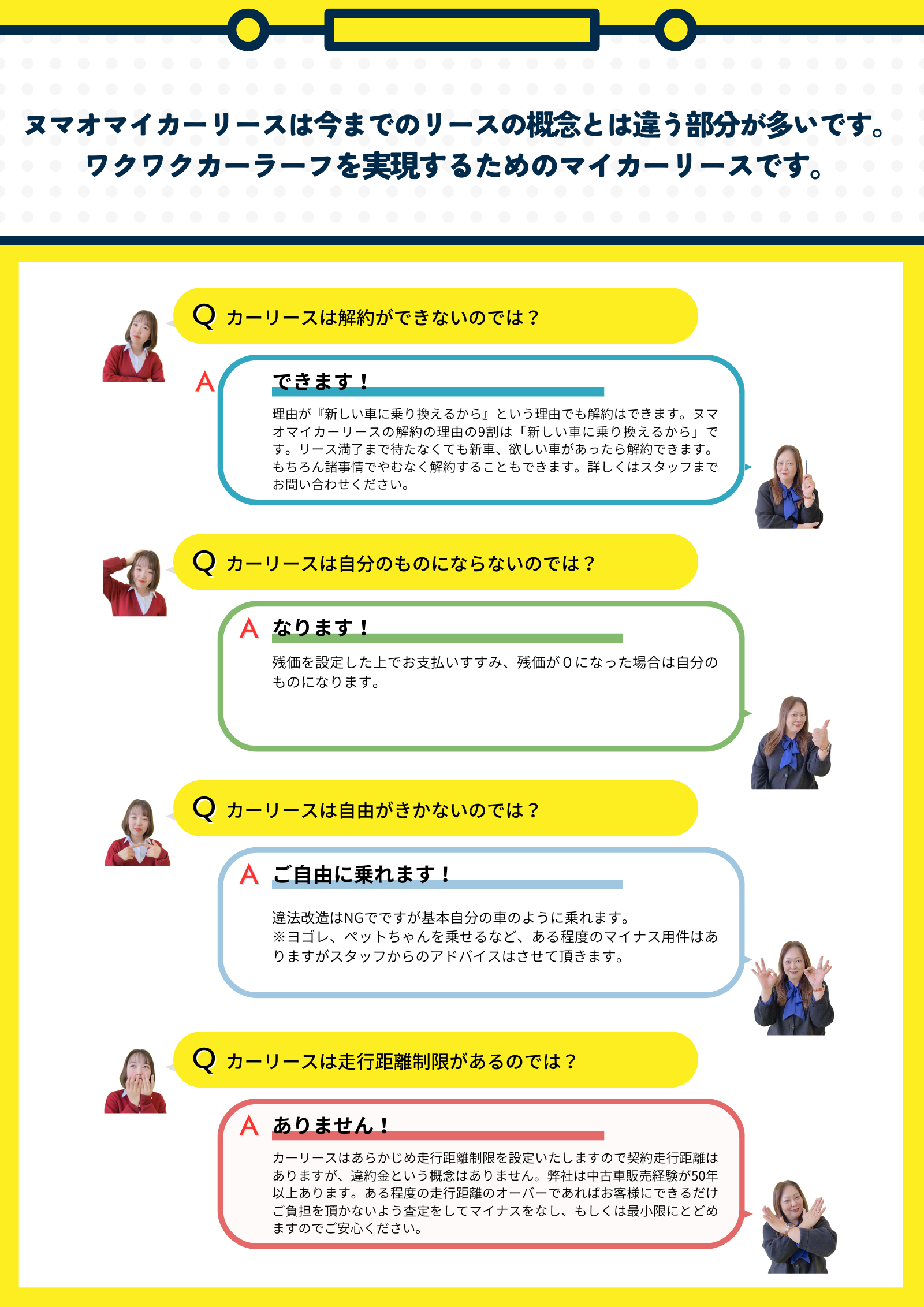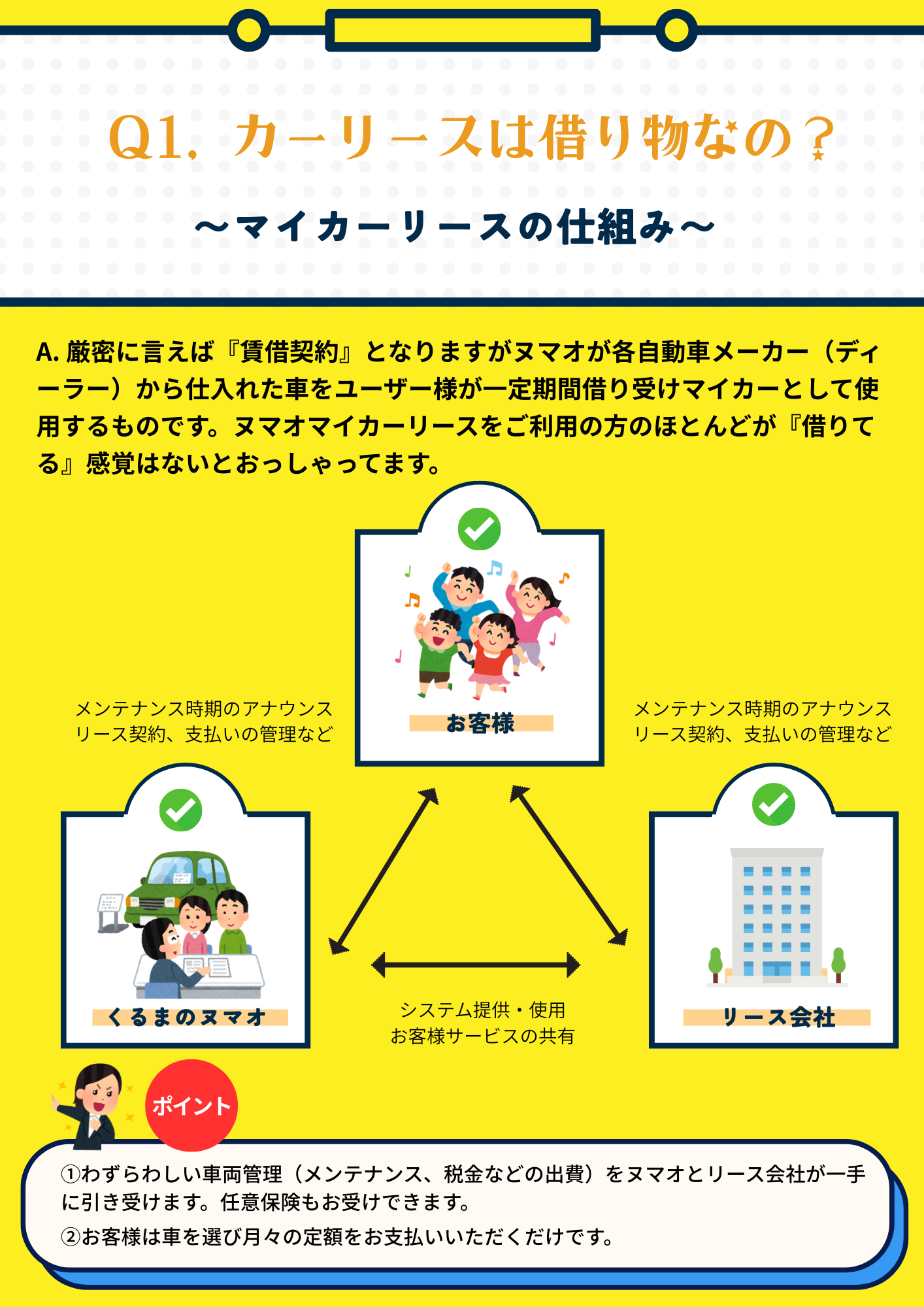 ヌマオマイカーリースは今までのリースの概念とは違う部分が多いです。